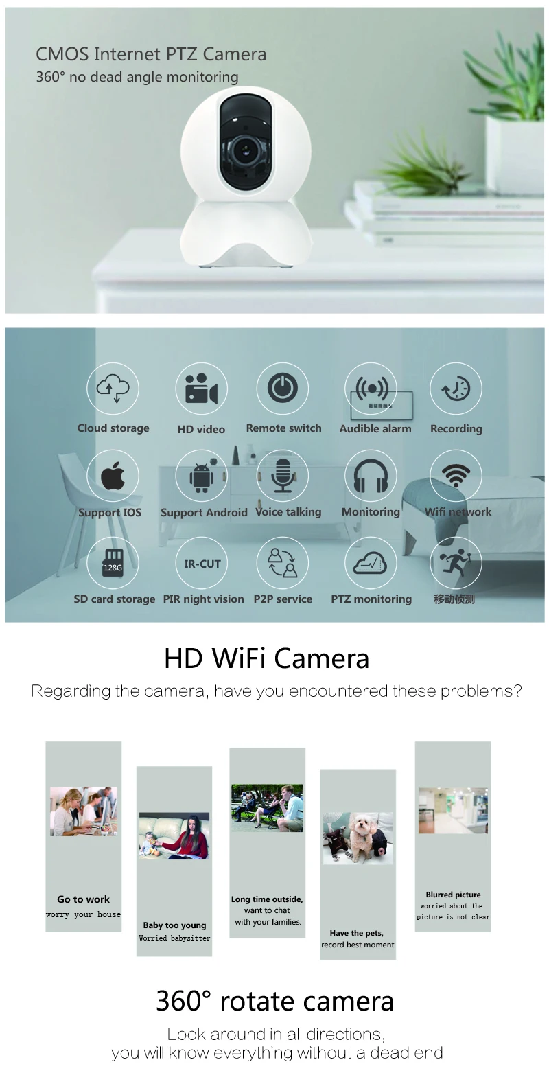 1080P WiFi Camera Tuya PTZ HD IP Camera Wifi Monitor Intercom AI Auto Tracking Rotation Night Vision Function Android IOS APP