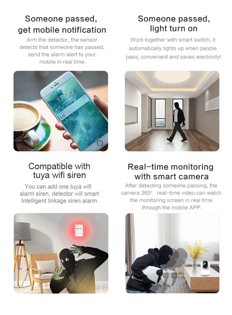 Tuya Smart WiFi Infrared Detectors Motion Sensor Alarm Compatible With Tuyasmart APP Smart Life APP